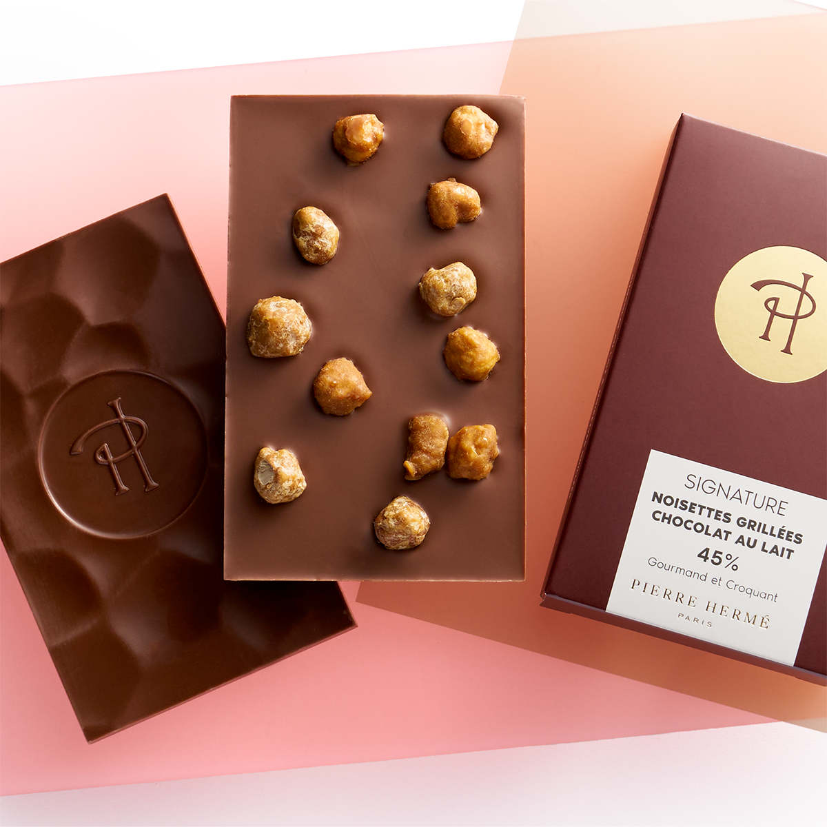 含有最低45%可可含量的牛奶巧克力,內含經過精心烘焙及焦糖化處理的榛果,並採用純正可可脂製成,呈現出香醇濃郁且口感細膩的風味體驗。