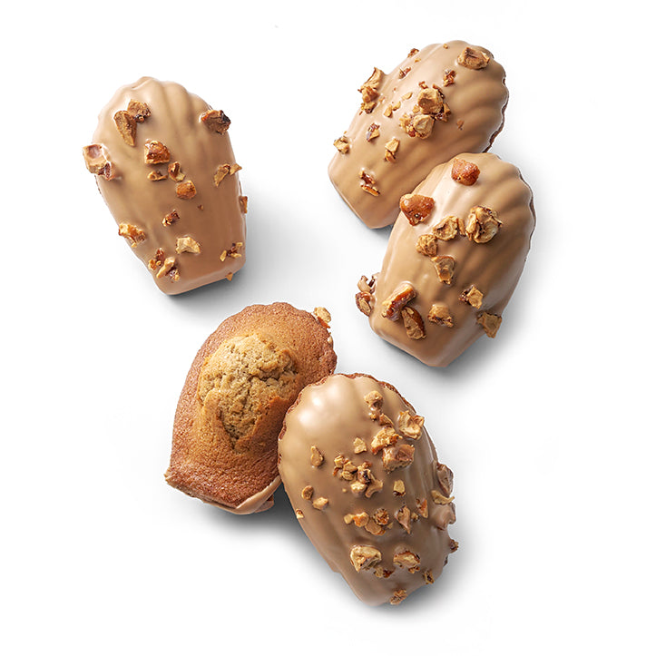 榛果與黑巧克力瑪德蓮散發濃郁的榛果香氣。咬下時先是榛果的香脆,隨即黑巧克力的醇厚在口中綻放,最後內餡的榛果醬增添了層次感。