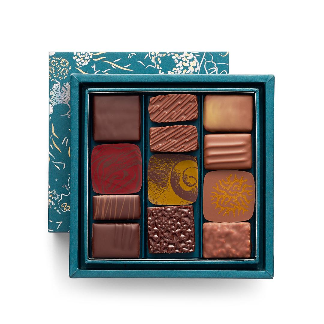 巧克力保存期限如包裝所示,建議保存在15°C至18°C之間,避免日照且置於乾燥處;也可將他們存放於冰箱中,以保鮮膜包覆外盒,保護巧克力免受周圍異味影響。