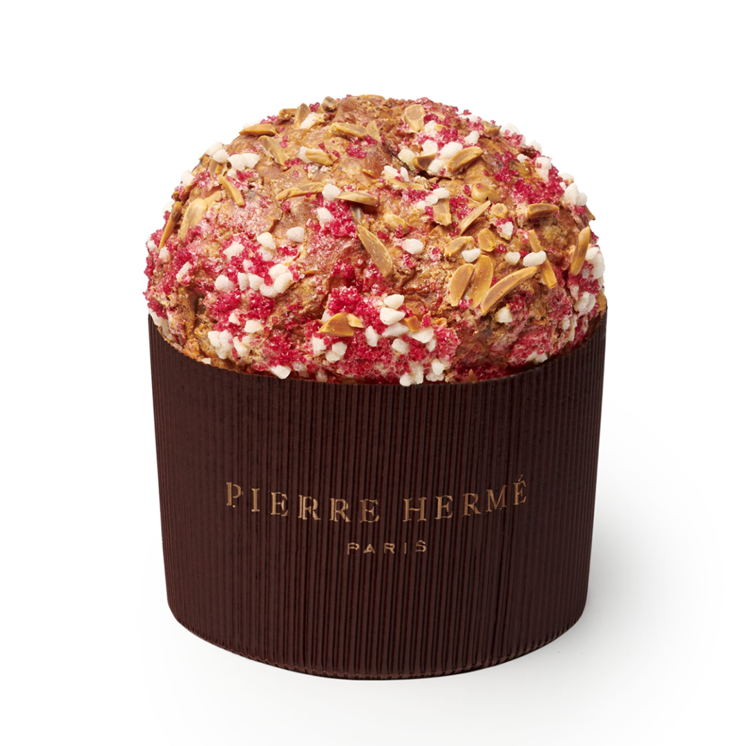 以鬆軟香潤的布里歐麵糰為基底,揉入芬芳的玫瑰風味與細緻的杏仁餡,再以覆盆子與荔枝果粒點綴其中。層次豐富、香氣優雅,玫瑰的花香交織果實的酸甜,完美呈現出Pierre Hermé經典的花果浪漫風格。